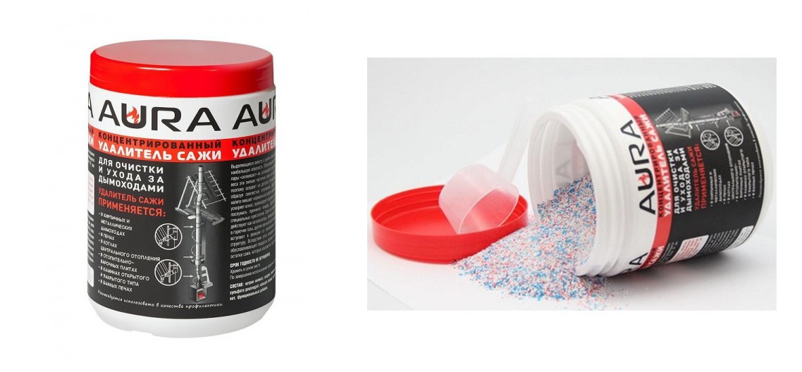 Несмотря на то, что механические варианты очистки до сих пор актуальны, все же современные варианты показывают большую эффективность. Речь идет о применении специализированных составов для очистки систем дымоходов. Если говорить о конкретных примерах, то специалисты отмечают эффективное действие составов AURA, они представлены в коробках и банках. Эти составы актуальны как для борьбы с серьезными засорами, так и для использования в профилактических целях, кроме того, они подходят для систем любого типа.