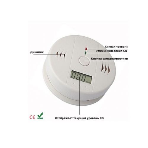- прибор оборудован экраном, на котором отображается концентрация угарного газа в воздухе;