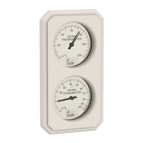 Термогигрометр 221-THVА от компании Sawo имеет оригинальную прямоугольную форму с фигурными углами. Ориентация прибора вертикальная. В широкой рамке из древесины осины находится два круглых окошка. Под стеклом каждого окошка расположен графичный циферблат. Один из них - это гигрометр, который с точностью измерит уровень влажности в парной, другой - термометр, который сообщит о температуре воздуха. Данный прибор прекрасно подойдёт для использования в любом парильном помещении. В нашем интернет-магазине представлен широкий ассортимент измерительных приборов в корпусах из разных видов древесины. Вы можете купить по привлекательной цене модель 221-THVА или присмотреться к другим вариантам.