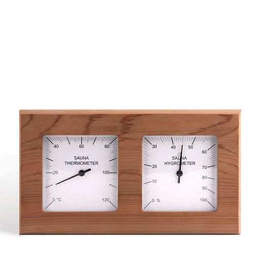 Термогигрометр 224-THD от компании Sawo имеет классическую прямоугольную форму. В широкой рамке из древесины кедра находится два квадратных окошка. Под стеклом каждого окошка расположен графичный циферблат. Один из них - это гигрометр, который с точностью измерит уровень влажности в парной, другой - термометр, который сообщит о температуре воздуха. Данный прибор прекрасно подойдёт для использования в любом парильном помещении. В нашем магазине представлен широкий ассортимент измерительных приборов в корпусах из разных видов древесины. Вы можете купить по привлекательной цене модель 224-THD или присмотреться к другим вариантам.