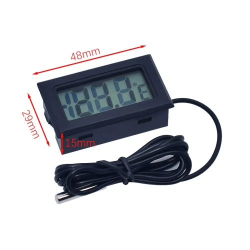 Термометр электронный экономичен и прост в эксплуатации, имеет небольшие размеры, простой дизайн и большой дисплей. Выносной датчик дает ряд преимуществ, например можно измерить температуру за окном квартиры, или воды в аквариуме. Электропитание: батарейка типа AG13 1,5В 2 штуки (идут в комплекте). Длина провода выносного датчика – 1 метр.