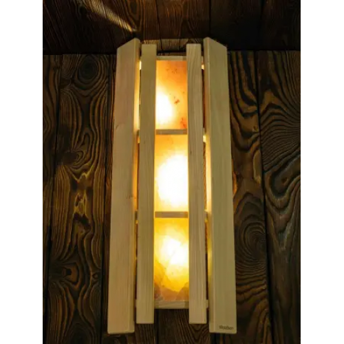 Абажур выполнен из ольхи. Лаконичный дизайн абажура прекрасно вписывается в любой интерьер парильного помещения. Благодаря вставке из Гималайской соли насыщает воздух парной полезными микроэлементами, дарит неповторимый уют и настроение.