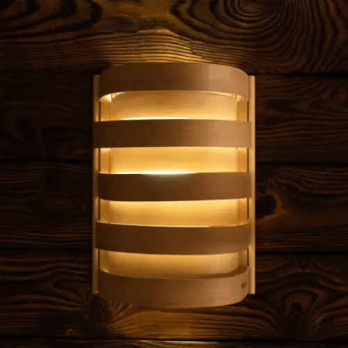 Абажур выполнен из Кавказской Ольхи. Лаконичный дизайн абажура прекрасно вписывается в любой интерьер парильного помещения. С помощью абажура можно создать приятный и мягкий свет в парном помещении. Помимо эстетических свойств, абажур позволяет защитить светильник от брызг воды.