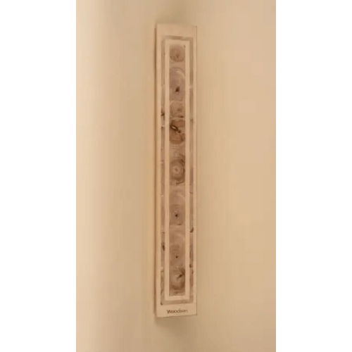 Светильник диодный Woodson FIJI Line из среза можжевельника с оригинальной вставкой линии из кавказской ольхи. Идеально подходит для сдержанного и лаконичного дизайна парной.