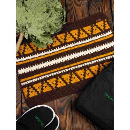 Коврик обеспечивает термозащиту в бане или сауне. Укладывается непосредственно на полок и защищает тело от высоких температур поверхности полка. Вязка достаточно плотная, а орнамент выдержан в цветом решении шапок Woodson. Коврики наилучшим образом поддаются стирке и сушке, не меняют размер после многократного использования. Коврик упакован во влагозащитную и премиальную упаковку.