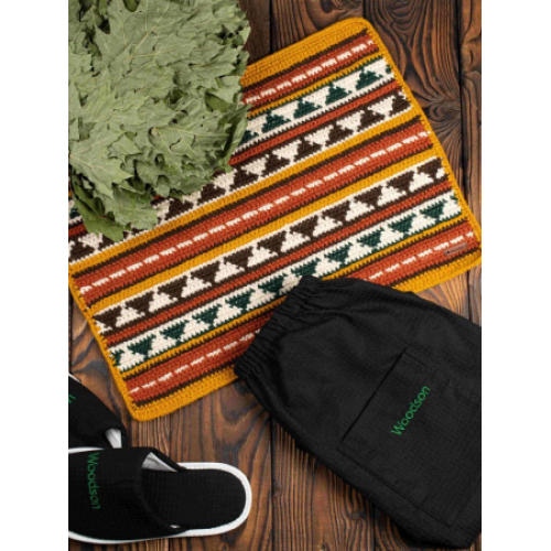 Коврик обеспечивает термозащиту в бане или сауне. Укладывается непосредственно на полок и защищает тело от высоких температур поверхности полка. Вязка достаточно плотная, а орнамент выдержан в цветом решении шапок Woodson. Коврики наилучшим образом поддаются стирке и сушке, не меняют размер после многократного использования. Коврик упакован во влагозащитную и премиальную упаковку.