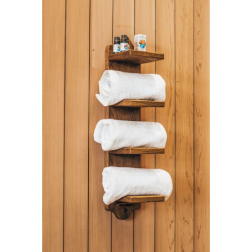 Полка для полотенец Woodson M4, дуб подойдёт не только для бани и сауны, но и для любителей лофт стиля.