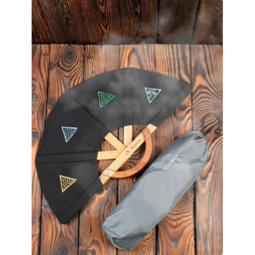 Веер для бани "Пятый элемент" Woodson создан для настоящей русской бани. Ткань - натуральный лён с вышивкой орнаментов стихий природы, ручка - дубовая. Веер складывается и упаковывается в чехол, что обеспечит удобство переноски и перевозки. Данный веер разработан по требования Пар-мастеров