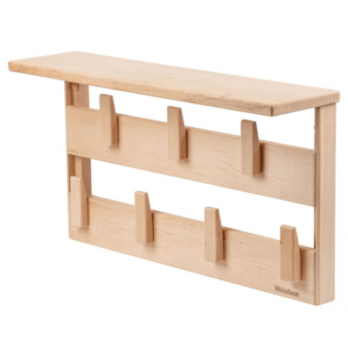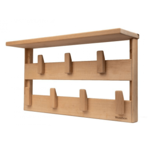Вешалка Woodson Семирамида размером 34х60 выполена из массива ольхи. Банный аксессуар совмещает в себе вешалку для одежды и полотенец, а так же полку для банных принадлежностей.