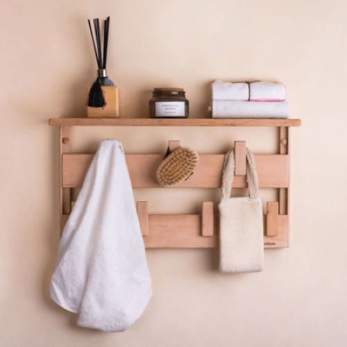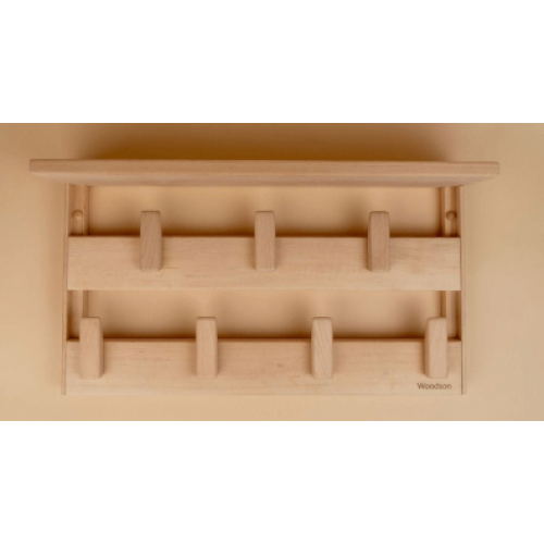 Вешалка предназначена для хранения аксессуаров: полотенец, шапок, черпаков, щёток и т.п. Верхня полка отлично подойдёт для хранения косметики, масел, свечей и т.п.