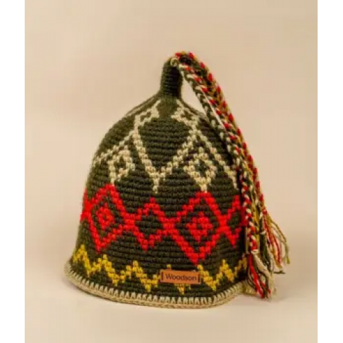 Шапка ручной работы с орнаментом в оттенке хаки. Изделие обеспечит защиту от перегрева головы в бане или сауне. Размеры шапки имеют 32 см в ширину и 22 см в высоту. Вязка достаточно плотная, а орнамент выдержан в цветовом решении ковриков Woodson. Шапки наилучшим образом поддаются стирке и сушке, не меняют размер после многократного использования. Шапка упакована во влагозащитную и премиальную упаковку.