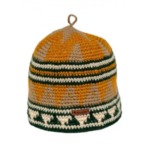 Шапка ручной работы с орнаментом в оттенке: жёлтый. Изделие обеспечит защиту от перегрева головы в бане или сауне. Размеры шапки имеют 30 см в ширину и 21 см в высоту. Вязка достаточно плотная, а орнамент выдержан в цветовом решении ковриков Woodson. Шапки наилучшим образом поддаются стирке и сушке, не меняют размер после многократного использования. Шапка упакована во влагозащитную и премиальную упаковку.