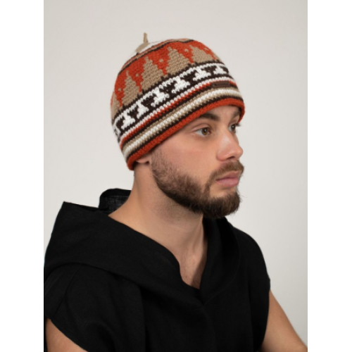 Шапка вязаная для бани Woodson Viking, орнамент, без косичек (коричневый)