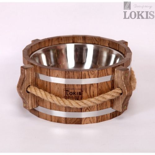 Шайка для бани деревянная. Оборудована вставкой из нержавеющей стали.
