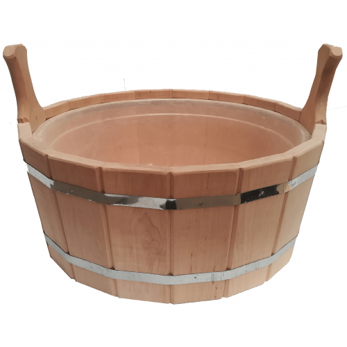 Шайка для бани деревянная. Оборудована вставкой из пластика.
