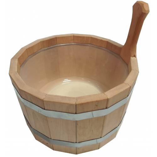 Ушат для бани деревянный. Оборудован вставкой из пластика.