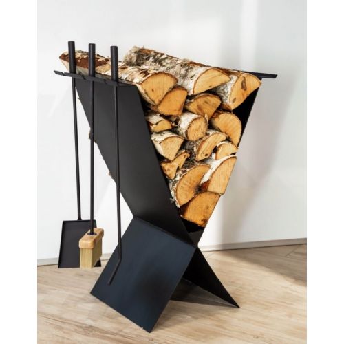 Необычная форма дровницы Ex позволяет ей сочетаться как с классическими каминами, так и с каминами в стиле хайтек.