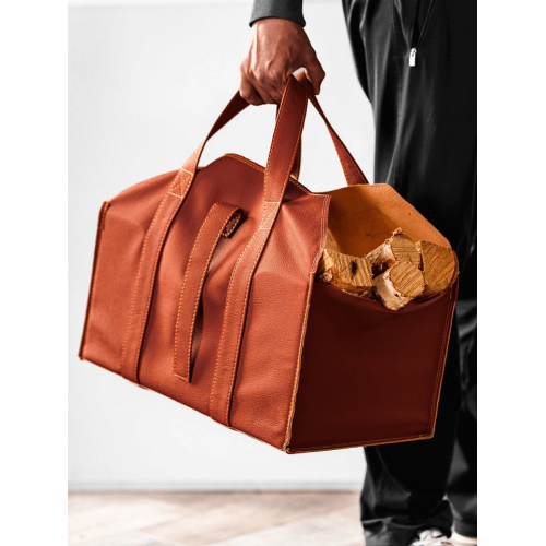 Сумка для переноски дров OTTAWA-2 выполнена из высококачественной экокожи медно-рыжего цвета. Внутрь сумки для дров вставлен металлический короб с прочным полимерным покрытием темно-серого цвета. Сумка используется для переноски дров из уличного дровника в дом, в баню, в зону мангала или барбекю, на террасу, а также для временного размещения запаса дров у камина или печи. Металлический короб, который вставлен внутрь сумки, помогает держать четкую форму этой подставке для дров, а также предохраняет сам аксессуар от загрязнений и влаги. Сумка для дров OTTAWA-2 очень вместительна и может использоваться как стационарная дровница. Эта дровница также может послужить элементом интерьера частного загородного дома, сада, может быть использована в помещении и на улице, прекрасно подойдет для отдыха на природе и кемпинга. Такой аксессуар поможет Вам сохранить в чистоте вещи и уберечь руки он повреждений и заноз. Широкие ручки и качественная плотная экокожа полотна позволяют перенести до 7 кг дров за один раз. Современный дизайн и качественные материалы гарантируют долговечность переноски для дров. В нашем магазине сумка для дров OTTAWA-2 представлена в 3 цветах: черный, графит и медно-рыжий. Размеры сумки: длина- 47 см, ширина- 30 см, высота- 26 см, высота с ручками-52 см. Сумка для дров OTTAWA-2 – прекрасный подарок для владельца загородного дома или дачи.