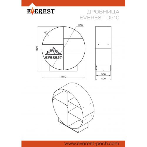 Дровница D510 от EVEREST устанавливается у стены в каминной комнате, предбаннике. Конструкция дровницы обеспечивает свободное движение воздуха, быструю просушку дров и порядок в месте расположения камина или печи.