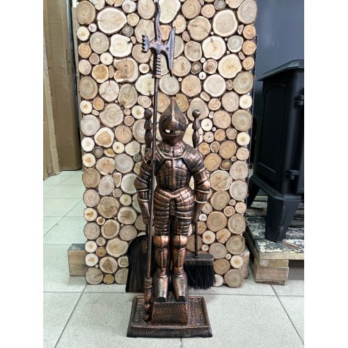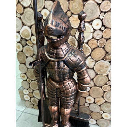 Каминный набор LK D50011 медь рыцарь. Набор состоит из 4 элементов: кочерга, щипцы для камина, совок и метелка. Все элементы вместе с подставкой выполнены в едином стиле и кроме своего основного назначения послужат немаловажной частью декора вашего камина.