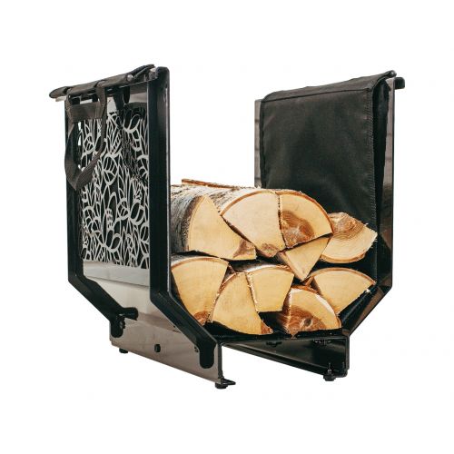Металлическая дровница с удобной сумкой для переноски дров. Дровница выполнена из металла толщиной 3 мм с порошково-полимерным покрытием. Напольная дровница отличное дополнение в бане или доме для печи, камина и станет удобным местом хранения дров.