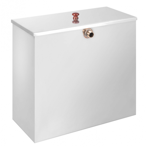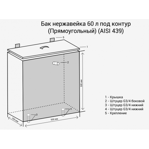 Бак для бани Везувий выносной, для дистанционного нагрева воды с помощью теплообменника. Вешается на стену, снизу имеет 2 штуцера с диаметром резьбы 3/4" для соединения с регистром-теплообменником, сверху крышка для заполнения бака водой. Используется в паре с регистром (теплообменником).