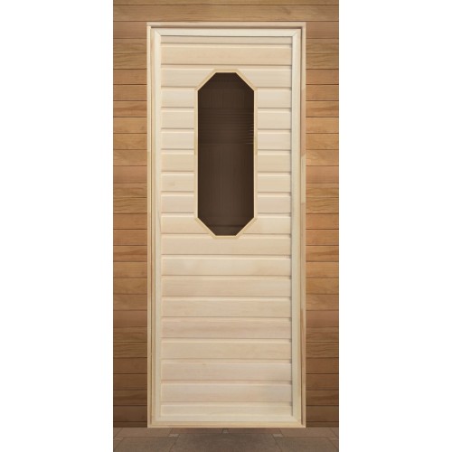 ДВЕРЬ ДЛЯ БАНИ ДЕРЕВЯННАЯ ГЛУХАЯ С ВОСЬМИУГОЛЬНЫМ СТЕКЛОМ 1900х700
