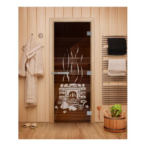 Стеклянная дверь для бани Doorwood Эталон Бронза с рисунком