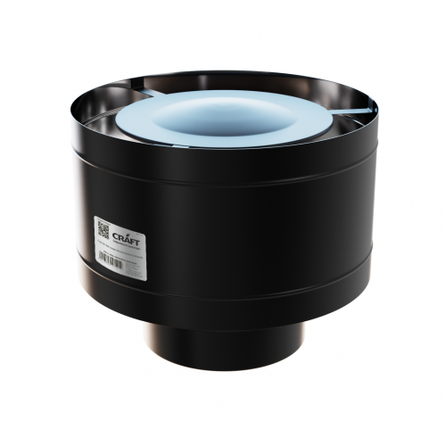 Завершающий элемент дымового канала. Помимо защиты от атмосферных осадков и листвы, препятствует возникновению обратной тяги из-за порыров ветра. Изготовлен из коррозионностойкой нержавеющей стали AISI 316L. Толщина стенки 0,8 мм, окрашен матовой черной термостойкой эмалью, что исключает появление следов побежалости. Толщина стенки 0,8 мм. Холодная формовка раструбного соединения с идеальной геометрией и газоплотностью. Лазерная сварка встык обеспечивает тонкий и прочный шов, увеличивая в разы срок эксплуатации. Рабочая температура до 600°С.