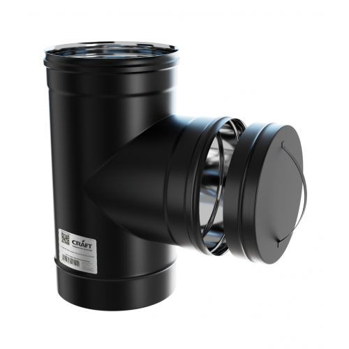 Элемент предназначен для ревизии и чистки дымоходного канала от сажи, конденсата и мусора. Изготовлен из коррозионностойкой нержавеющей стали AISI 316L, окрашен матовой черной термостойкой эмалью, что исключает появление следов побежалости. Толщина стенки 0,8 мм. Холодная формовка раструбного соединения с идеальной геометрией и газоплотностью. Лазерная сварка встык обеспечивает тонкий и прочный шов, увеличивая в разы срок эксплуатации. Рабочая температура до 600°С.