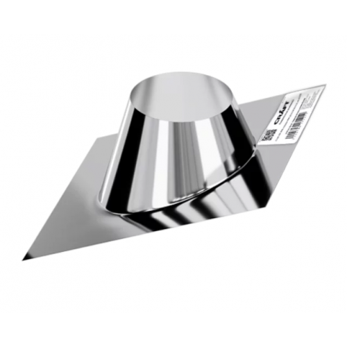 Элемент предназначен для прохода дымохода через крышу. Плоская часть крышной разделки изготавливается из алюминия. Конусная часть изготавливается из коррозионностойкой нержавеющей стали AISI 304. Толщина стенки 0,5 мм.