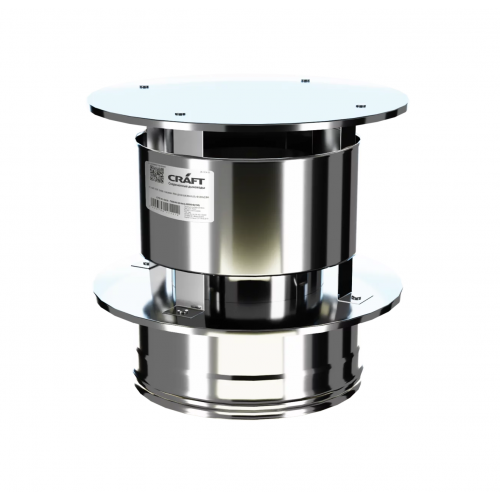 Завершающий элемент дымового канала, закрывает торцы сэндвича и предохраняет теплоизоляцию от атмосферных осадков. Защищает от порывов ветра и препятствует возникновению обратной тяги. Внутренний контур изготовлен из коррозионностойкой нержавеющей стали AISI 316L толщиной 0,8 мм. Внешний контур выполнен из аустенитной стали AISI 304 толщиной 0,5 мм. Холодная формовка раструбного соединения с идеальной геометрией и газоплотностью. Лазерная сварка встык обеспечивает тонкий и прочный шов, увеличивая в разы срок эксплуатации. Рабочая температура до 600°С.