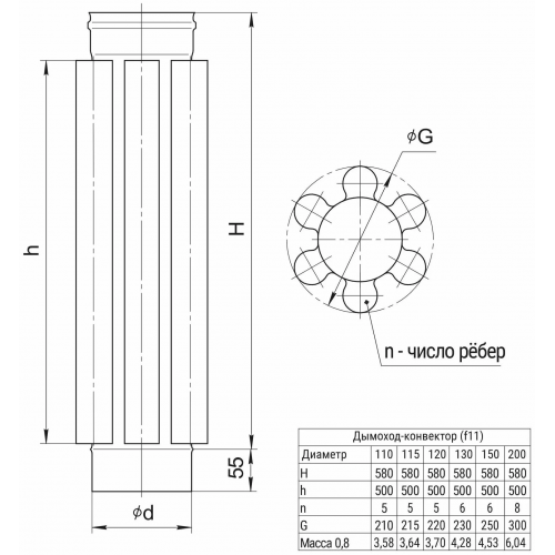- Модель: Дымоход-конвектор (430/0,8мм) Ф150