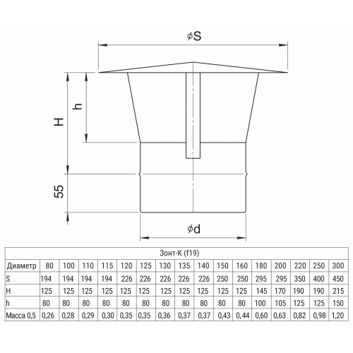 - Модель: Зонт-К (430/0,5мм) Ф80