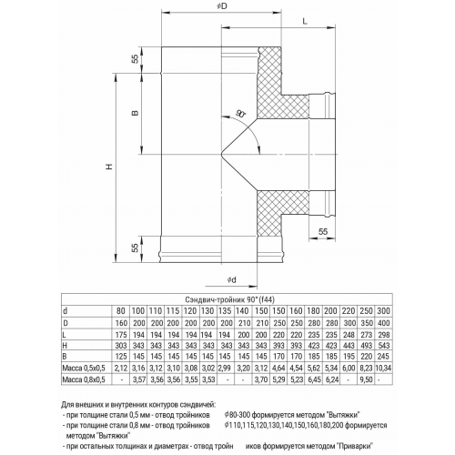 - Модель: Сэндвич-тройник 90° (430/0,5мм + нерж.) Ф80х160