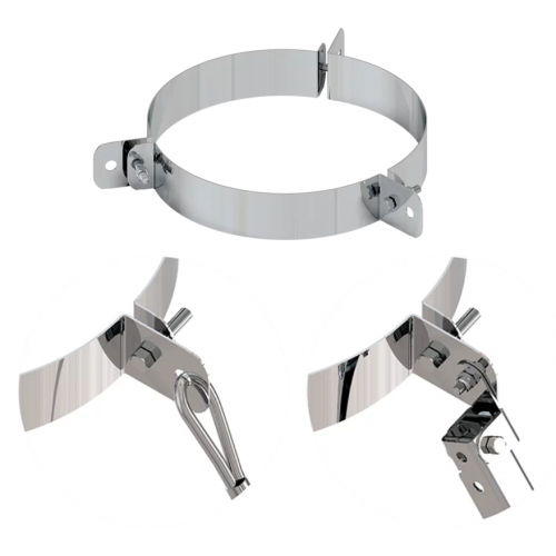 Элемент для фиксации дымохода при возвышении над поверхностью кровли более чем на 1 м. Обновленный элемент состоит из 3-х полукруглых секций, скрепленных болтами. Подходит к большинству такелажных креплений и идеально адаптирован для опоры телескопической FERRUM.