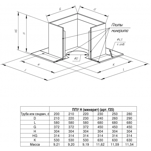 - Модель: ППУ Н (430/0,5мм + мин.) max t=600° C Ф200