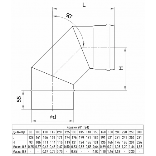 - Модель: Колено угол 90° (430/1,0мм) Ф150