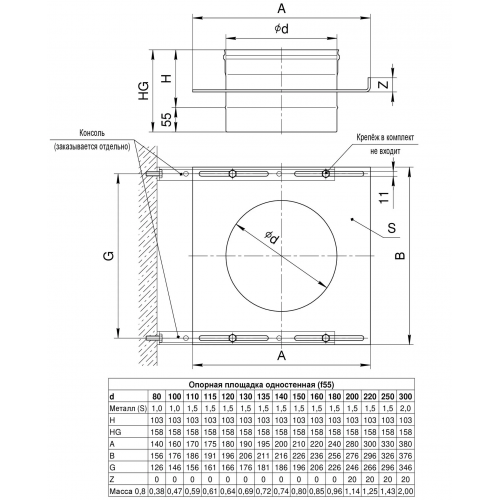 Ferrum GS площадка монтажная одностенная (430/0,8мм) Ф180