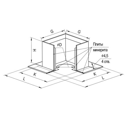 Элемент предназначен для прохода через стеновые и потолочные перекрытия, изготавливается из нержавеющей стали. Имеет основание квадратной формы с дополнительной изоляцией в виде короба из негорючего материала - минерита. Максимально допустимая температура 600°С.