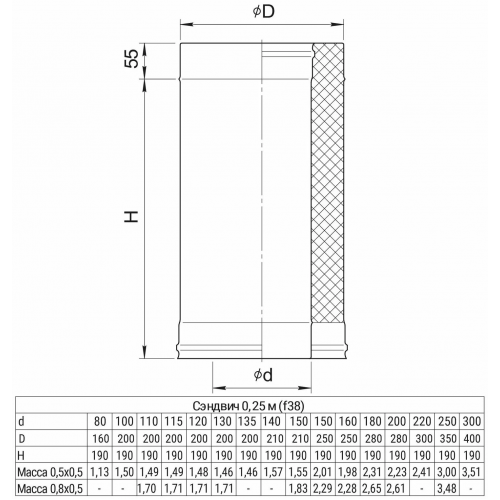 - Модель: Сэндвич 0,25 м (430/0,8мм + нерж.) Ф115х200