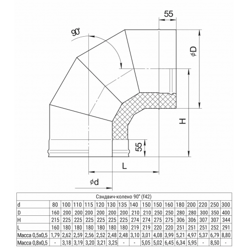 - Модель: Сэндвич-колено 90° (430/0,8мм + нерж.) Ф200х280