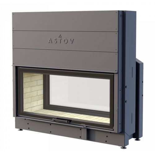 Две дверцы с прямым стеклом. Пространная, сквозная модель, великолепно вписывается в межкомнатные перегородки, для созерцания огня как из гостиной, так и из спальни или кабинета, служит отличной основой, для создания центрального (островного) камина.