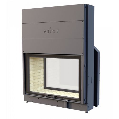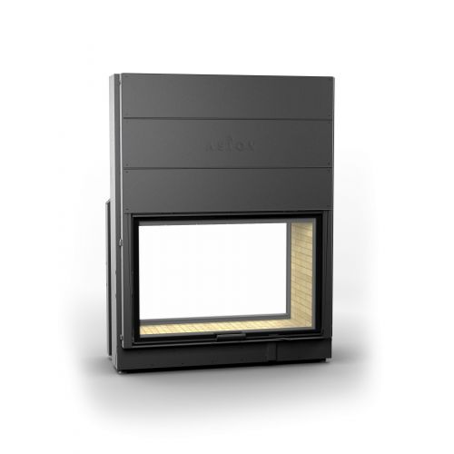 Две дверцы с прямым стеклом. Пространная, сквозная модель, великолепно вписывается в межкомнатные перегородки, для созерцания огня как из гостиной, так и из спальни или кабинета, служит отличной основой, для создания центрального (островного) камина.