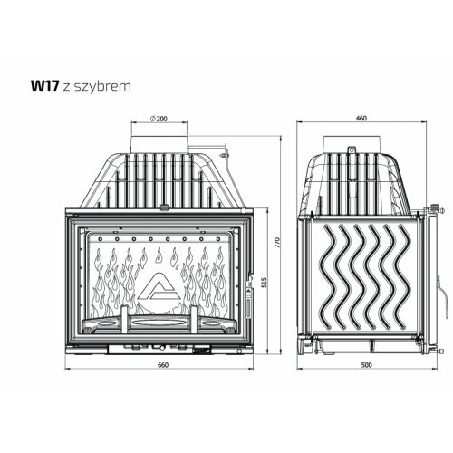 - Размеры топки (ВxШxД, мм) 515x660x500