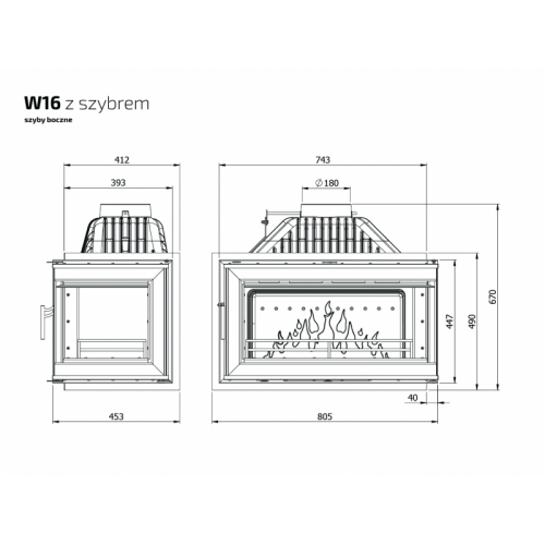 Каминная топка W16 PB с угловым правым стеклом без рамы (14.7 kW) с отличными характеристиками и великолепной ценой, используется для отопления помещений, а также как предмет интерьера. Выполнена из чугуна класса EN-GJL- 200, представляет собой качественный дизайнерский отопительный прибор.