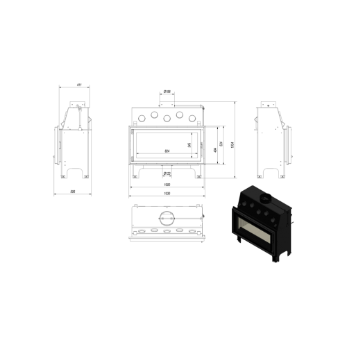 - Размеры топки (ВxШxД, мм) 1034x1132x449