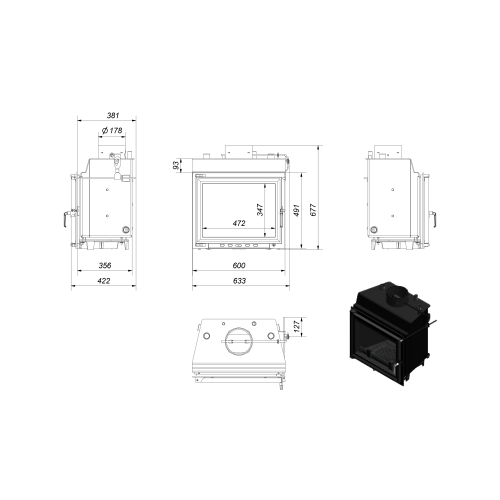 - Размеры топки (ВxШxД, мм) 677x600x380мм