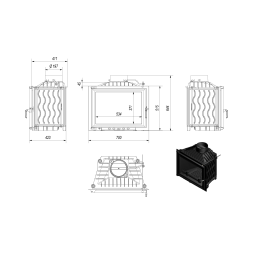 Размеры топки (ВxШxД, мм): 1140x818x437
