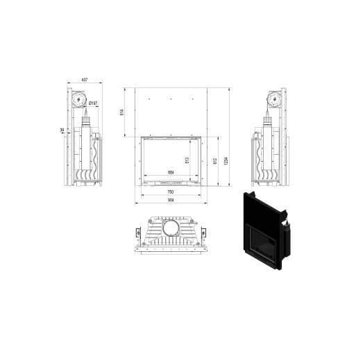 - Размеры топки (ВxШxД, мм) 1140x904x437